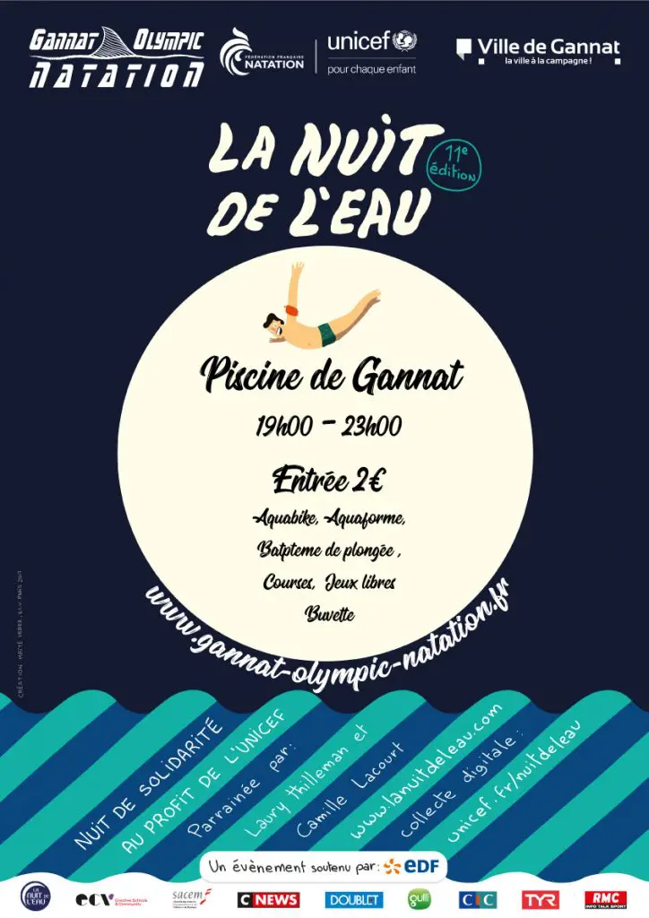 La Nuit De l’Eau 2018 Le GON en partenariat avec la Ville de Gannat est heureux de vous annoncer La Nuit De l’Eau 2018. Samedi 17 mars 2018 de 19h00 à 23h00, une grande soirée caritative autour de l’Eau à la piscine de Gannat. Entrée 2€. Tous les dons seront reversés à l’UNICEF. Venez nombreux […]